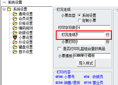 小票打印完撕下來給顧客時,如果發現有部分內容沒打出來,那么很可能是走紙走不夠,只需把走紙行數調高即可。