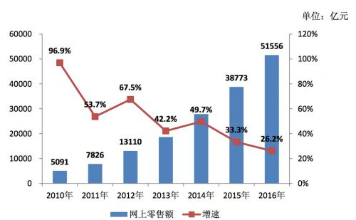 根據商務部的統計數據,自2010年以來,網上零售額的逐年下降。包括淘寶在內的不少電商平臺發現,從2014開始,純電商的方式已經難以繼續調動消費者。