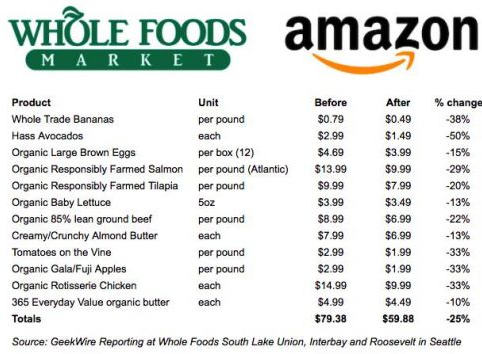 亞馬遜生鮮配送 Amazon Fresh 也在同一時間上架 Whole Foods 的有機食品,原本只在線上銷售的智能助手 Amazon Echo,占領了數家 Whole Foods 的貨架。自此,亞馬遜完成了線上與線下的革命性整合。